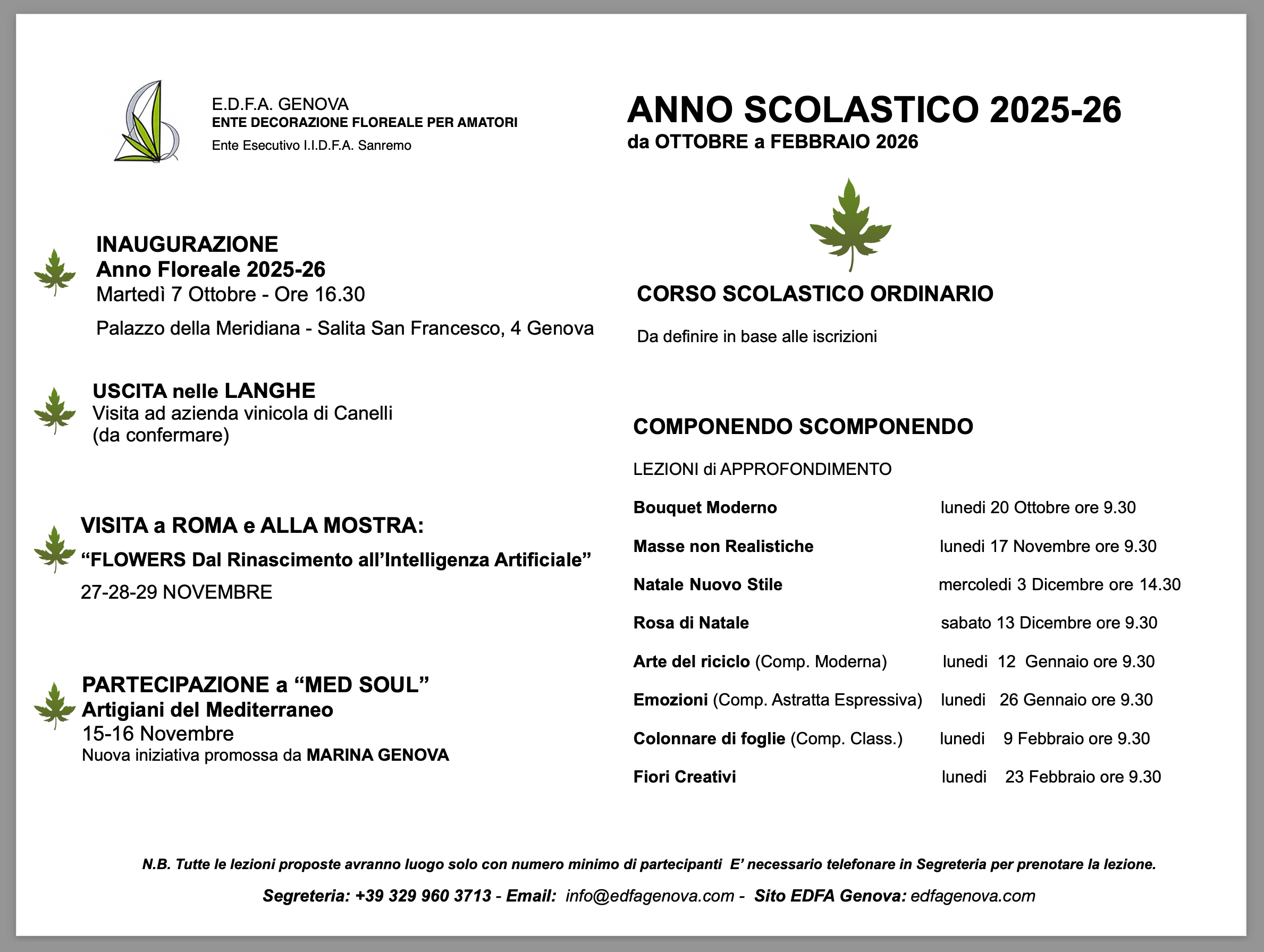 EDFA Imperia comunica che il prossimo 6 e 7 SETTEMBRE 2025 si svolgerà ad Imperia il 12° CONCORSO INTERNAZIONALE DI DECORAZIONE FLOREALE associato alla MANIFESTAZIONE
